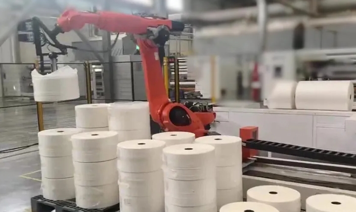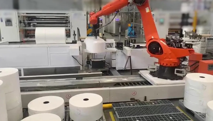 In the key stages of film roll production, robots are required to perform complex tasks such as extracting rolls using expansion shafts, flipping the material, and laying it flat. Despite this, real-world conditions introduce several problems, including inconsistencies in product dimensions, precision issues, product sticking, and unexpected events, all of which create challenges for fully automated systems.